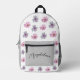 ELEGANT PINK AND GREY FLOWERS PATTERN CUSTOM NAME PRINTED BACKPACK