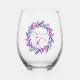Elegant Pink and Purple Wreath 50th Birthday Party Stemless Wine Glass