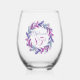 Elegant Pink and Purple Wreath 85th Birthday Party Stemless Wine Glass