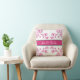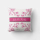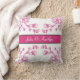 Elegant pink and white cherry blossom pillow with pink and grey strip detail. Customise with your own text, names, or initials.