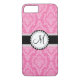 Elegant PINK and White Damask Pattern Monogram Case-Mate iPhone Case