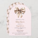 Elegant Pink Beige Coquette Bow Baby Shower Invitation