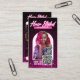 This elegant and stylish business card uses a captivating photo of a hair stylist to grab attention. The design incorporates a chic and simple colour palette, with soft pinks and purples used to complement the photo and create a visually appealing card. A subtle geometric pattern adds a touch of sophistication while ensuring that your contact information remains clearly visible. The design is easily personalised with your business name and contact information and perfectly showcases your brand's identity. This card will help make a professional, lasting impression.