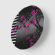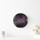 Elegant Pink Blossom Black Asian Bamboo Round Clock
