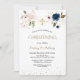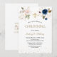 Charming card design featuring watercolour delicate pink and blue flowers, faux gold outlined roses, a faux gold shining cross, faux gold confetti, on a white background. Use Personalise tool to add your info. For matching items, please, visit my Elegant Baptism Christening Collection.