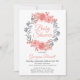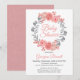 Elegant Pink Blush Grey Floral Wreath Baby Shower Invitation