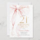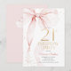 Elegant pink bow 21st birthday invitation. Feminine design in blush pink and gold. Features trendy watercolor coquette bow, and modern typography font. Perfect for an elegant style women's bday celebration. Personalize with your own details. Printed Zazzle invitations or instant download digital printable template.