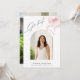 Celebrate your graduate with this elegant and modern two‑sided graduation invitation with watercolor pink bow illustration on the front and space for two personal photos. The front design combines refined typography, a soft feminine accent, and a beautifully balanced layout that highlights your graduate’s portrait. The back of the card offers a full‑bleed photo with a minimalist name and class year caption, creating a polished, magazine‑style finish. Perfect for high school or college graduates who love a clean, contemporary aesthetic with a touch of charm. Easily customize all text and photos to create a meaningful keepsake for your celebration.