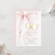 Elegant pink bow 90th birthday invitation. Feminine design in blush pink and gold. Features trendy watercolor coquette bow, and modern typography font. Perfect for an elegant style women's bday celebration. Personalize with your own details. Printed Zazzle invitations or instant download digital printable template.