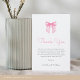 Express your gratitude with our Pink Watercolor Bow Thank You Card, designed to celebrate the arrival of your little one with elegance and modern charm. This beautifully crafted card features a delicate watercolor bow paired with sophisticated script, embodying a simple, elegant, and classic aesthetic. Feminine touches and coquette elements make it a perfect choice for a stylish baby shower. The card also showcases a pretty soft pink gingham on the back.
