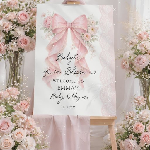 Pink Bow Floral Vintage Lace Baby ShowerDesigned by Katsiaryna Lukyanava