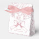 This elegant baby shower favour box features a pink bow/ribbon on a white background with floral patterns. Personalise it for your needs. You can find matching products at my store.