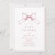 This elegant baby shower invitation features a pink bow/ribbon. The reverse side features a white background with floral patterns in pink. Personalise it for your needs. You can find matching products at my store.