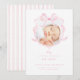 Elegant Pink Bow Girl Photo Birth Announcement