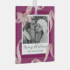 Elegant christmas holiday glass ornament featuring a stunning wine background, with a photo centrepiece adorned by beautiful pink watercolor ribbon and bow. Complete with your family name, the year and the seasons greetings "merry christmas".