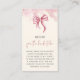 Elegant Pink Bow Recipe Bridal Shower Enclosure Card