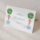 This is an elegant and economical option for individual personalized place cards. This design is sold as a 3.5x5 inches flat card that you will need to fold (or score and fold) in half yourself to make individual place cards with a folded size of 3.5x2.5 inches. This classic design features a watercolor boxwood topiary ball decorated with a pink bow and situated in a Ginger Jar planter.