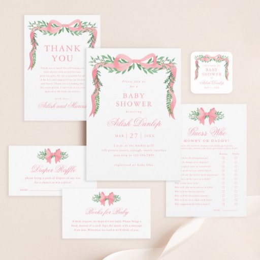 Elegant Pink Bow Greenery Girls Baby ShowerDesigned by Stacey Meacham