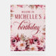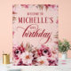 Welcome guests with this stunning 18"x24" acrylic birthday sign featuring a sophisticated floral design in rich burgundy, blush, and cream hues. The transparent-style background adds a modern touch, while elegant script and serif typography create a timeless look. Perfect for milestone celebrations such as 50th, 60th, 70th, or 80th birthdays, this acrylic sign makes a beautiful statement on an easel at the entrance, dessert table, or photo area.