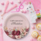 Elegant Pink Burgundy Floral Happy Birthday Paper Plate