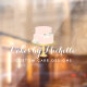 An elegant pastel pink tiered cake decorated with white flowers sits atop a faux gold cake stand for a beautiful aesthetic on this bakery or cake decorator's window decal. Update the calligraphic text with your name or business name for an instant logo. Art and design © 1201AM Design Studio | www.1201am.com
