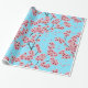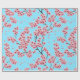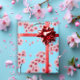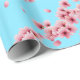 Elegant Pink Cherry Blossoms on Sky Blue Christmas Wrapping Paper