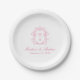 Elegant Pink Chinoiserie Monogram Crest Wedding Paper Plate