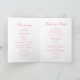 Add a touch of romance to your wedding ceremony with this beautifully folded wedding program, featuring a delicate baroque-style crest surrounding the couple's monogram initials. Combining Victorian charm with Chinoiserie-inspired elegance, the design showcases the couple's names, wedding date, and location in soft pink text. Inside, you'll find the ceremony order of service and a bridal party list, while the back provides space for a heartfelt thank you message to guests. With its elegant pink calligraphy and timeless sophistication, this program is perfect for couples looking for a romantic and refined wedding design.