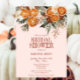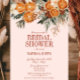 This elegant blush pink citrus floral bridal shower invitation features fall floral greenery. Oranges shown in burnt orange with cinnamon sticks and autumn flowers. All text can be changed.