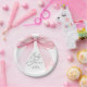 A perfect way to celebrate a girl baby shower with this elegant pink coquette bow theme. Shower the mother-to-be with this pretty and pink ribbon and bow theme baby shower party round paper plate featuring a hand drawn sophisticated blush pink bow accent and a delicate script font.
