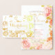 Initials on Back Elegant Pink, Coral and Gold Foil Rose Wedding Foil Card