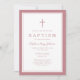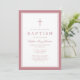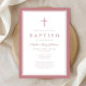 Elegant Pink Cross Baby Girl Baptism Invitation