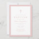 Elegant Pink Cross Baby Girl Baptism Invitation