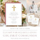 Elegant Pink Cross Girl Photo First Communion Invitation