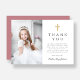 Elegant Pink Cross Girl Photo First Communion Thank You Card