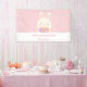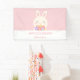 Elegant Pink Cute Rabbit & Flowers Girl Birthday Banner
