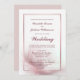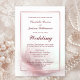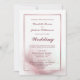 An elegant dusty rose feather wedding invitation that details the location of the ceremony and reception venues.