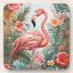 Elegant Pink Flamingo Bird and Tropical Flowers Coaster