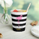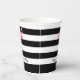 Elegant Pink Flamingo Black and White Stripes Name Paper Cups