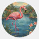 A vintage paradise with this retro-style pink flamingo, poised elegantly in a tranquil tropical lagoon.