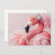 Elegant Pink Flamingo with Pearls and Feathers Postcard