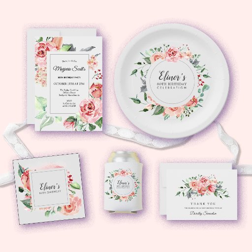 80th Birthday Elegant Pink Rose FloralDesigned by Nelda Hoxie