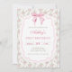 Elegant Pink Floral and Bow Girl Birthday Invitation