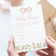 Add a fun and interactive element to your baby shower with this Elegant Pink Bow Baby Guesses Game Card. Featuring a soft watercolor pink bow at the top, "Baby Guesses" in elegant calligraphy script, and a dusty rose floral garland with lush greenery along the bottom, this charming design is perfect for an enchanted, vintage, or garden-themed baby shower. Guests can write their predictions for the baby’s birth date, time, weight, and length, making this a memorable keepsake for parents-to-be. Customise the instructions for a personal touch and create a delightful game everyone will enjoy!