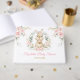 This elegant design features a cute baby bunny adorned with gorgeous pink flowers and watercolor greenery wreath
