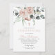 An elegant baptism/christening invitation featuring delicate pink floral accents and touches of greenery. Perfect for celebrating this special occasion with timeless charm.