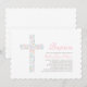Elegant Pink Floral Cross Baby Girl Baptism Invitation