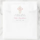 Elegant Pink Floral Cross First Communion Square Sticker.