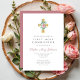 Elegant Pink Floral Cross First Holy Communion Invitation
