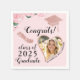 Create elegant pink floral graduation napkins for the class of 2025, personalised with a heart shape photo, graduate's first and last name, and year of the event. This girly design also features a Congrats! saying decorated with light pink rose flowers and illustrations of the graduate's cap and diploma. Upload the graduate's photo, type names and type a year if other than 2025 using the template before ordering.
